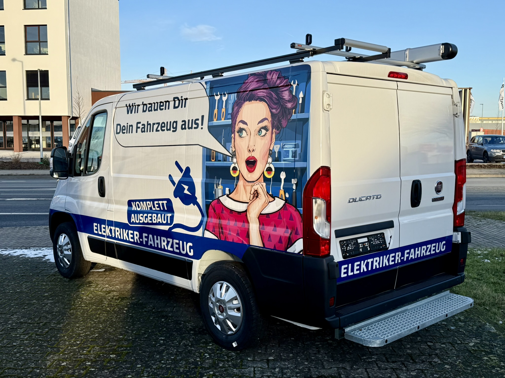 Wir haben bereits einige Branchenmodelle realisiert, hier im Bild ein Fiat Ducato Kastenwagen mit Ausbau für Elektroinstallateure.
